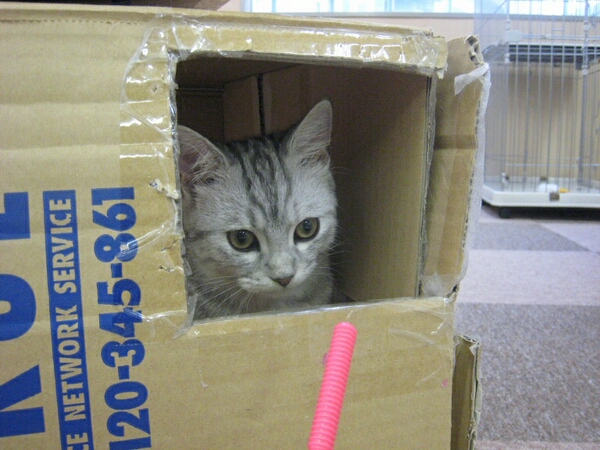 ダンボールに入りますた。なんだか居心地よさそうっぽい。
