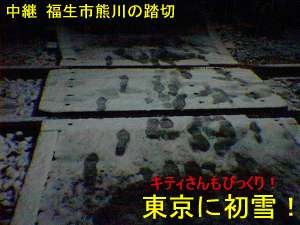 横田基地への引込線です。写真は踏み切りですが、うっすらと積もった雪に足跡がいっぱいです。
