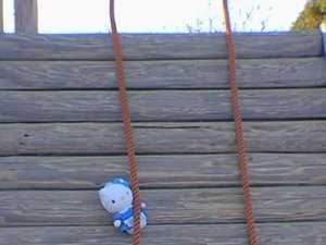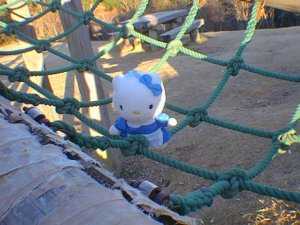 網の目が粗くて小さいキティさんは渡るのも一苦労です。これはもう綱渡りですね。
