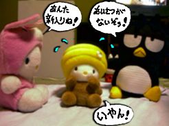 おやおや、ちゃんとご挨拶しないから、 さっそくしめられちゃいましたねえ。 |