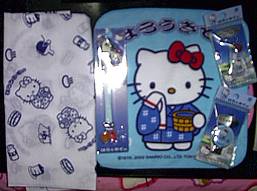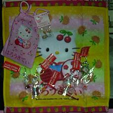はまっているようです。 「温泉はろうきてぃ御一行さん」ハンドタオル、ストラップ、プルトップオープナー、つめきり、てぬぐいでございます。 ぬいぐるみの発売を熱望するですう。 |