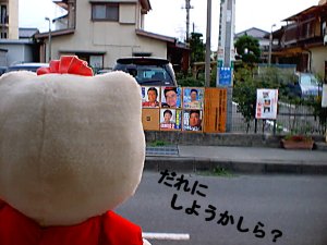 誰に投票するのか決めたんでしょうか? なんだかとっても気合がはいっているキティさんですねっ! |