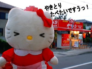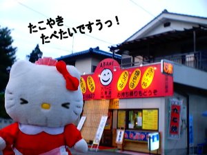 今度は「たこ焼き、焼きそば、お好み焼き」屋さんですう。 お店の看板は笑ってるけど、お金が無くて買えないキティさんは 泣きそうですう... |