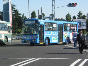 こんどは青いキティバスがやってきました。 |