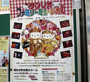 あらあら、駅の構内にサンリオミュージカルのポスターが