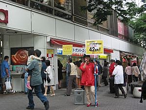 店内はお芋を洗うようです。 このときばかりは宝くじ売り場よりも人口密度が高いんじゃないでしょうか? |