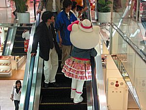サイン会が終わると、こんどは2FのVivitixに向かいます。 ピューロのおにいさんと一緒に、お行儀よく出番を待っている キティさんです。 |